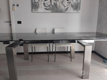 Tavolo Glass, allungabile, piano in vetro fumé, gambe in acciao. Misure chiuso: 100x180 Misure aperto: 100x270 Buono stato