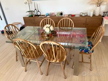 Il piano in vetro temprato è spesso, molto resistente e facile da pulire. La struttura in acciaio inox garantisce solidità, stabilità e durata nel tempo. Tavolo usato con cura, in ottime condizioni.