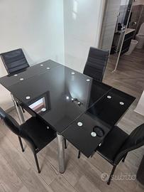 tavolo da pranzo4/6 pers + 4 sedie ecopelle nere