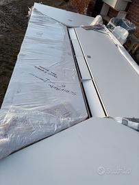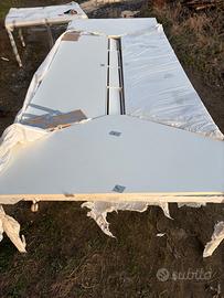 Vendo prestigioso tavolo da riunione professionale di marca ESTEL, leader nell'arredo ufficio di alta gamma. Il tavolo è caratterizzato da un design minimale e una struttura estremamente robusta, ideale per sale riunioni moderne o studi professionali. Caratteristiche principali:misure 360x140xh7 • Canalizzazione Integrata: Il tavolo è dotato di un ampio canale centrale per il passaggio dei cavi (elettrificato) con sportellini in alluminio a ribalta e spazzole passacavi nere. Perfetto per collegare PC e monitor senza avere cavi a vista. • Dimensioni: Grande formato (ideale per 8-10 persone). • Finitura: Piano in laminato bianco di alta qualità, resistente e facile da pulire. • Stato: Il tavolo è attualmente smontato per facilitare il trasporto (le foto mostrano i piani solo appoggiati per esposizione). • Dotazione: Completo di tutta la ferramenta originale per il montaggio. Condizioni: Ottime condizioni generali, piani protetti da pellicola protettiva come da foto. Prezzo: 600 € (Trattabili)
