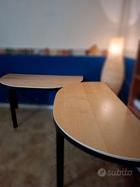 Tavolo IKEA tondo, il tavolo è un tavolo modulare adatto per sei persone quando è in modalità circolare. può essere utilizzato sia internamente che esternamento o come due scrivanie a forma di semiluna adattabili all'occorrenza.