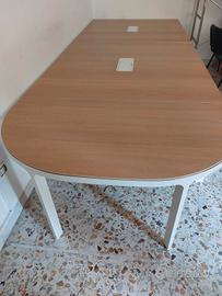 Vendo tavolo da riunioni, in ottimo stato, marca Ikea, utilizzato poco. Tavolo da conferenza o da ufficio con una finitura in legno chiaro e gambe in metallo bianco. Al centro del tavolo è presente un pannello integrato con una presa elettrica o un connettore per cavi, tipico di ambienti lavorativi moderni per facilitare l'uso di dispositivi elettronici. Sono 3 pezzi, vendo a blocco unico