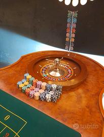 Vendo tavolo da Roulette di legno pregiato (Radica) in ottime condizioni, completo di accessori come in foto. Misure: L 105cm| H 80cm | P 230