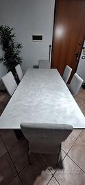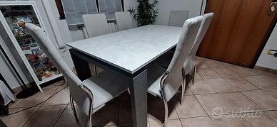 Set 'Tavolo (allungabile) con 6 sedie' davvero tutto in ottimissime condizioni. Tutto il set risulta già montato e pulito. A due delle sei sedie (comunque in condizioni semi perfette lo stesso) manca un copri vite a lato come mostrato in foto, ma le condizioni generali rimangono comunque davvero davvero ottime. Misure del tavolo: 150cm lunghezza x 90cm larghezza x 75cm altezza; Misure del tavolo allungato: 200cm lunghezza.
