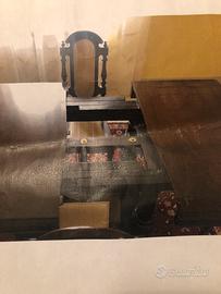 Tavolo antico in legno di ciliegio quadrato all’occorrenza estendbile per più di 2 m con assi di legno completo di 4 sedie dello stesso colore con schienale e seduta foderata