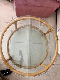tavolo in bamboo e vetro a 2 livelli.