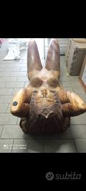 Tavolo intagliato direttamente dal tronco di un albero raffigurate donna dell impero Inca che rappresenta a quell epoca libertà economica e sessuale pur essendo subordinata all uomo .UNICO NEL SUO GENERE PAGATO 2500 EURO 14 ANNI FA'. Tenuto come nuovo nonostante gli anni comprato da un collezionista. Vetro ovalizzato in cristallo .