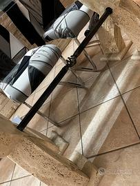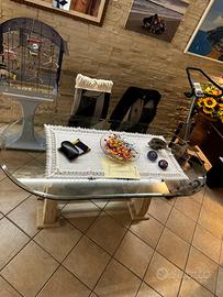 Tavolo salotto moderno, con base in pietra, top in vetro ovale stondato , Colore Beige. 180 x 90 x h 77cm (spessore vetro 1,5 cm) (Tavolo comprato in negozio no mercatoni)