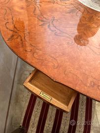 Tavolo da salotto in legno intarsiato con 4 cassettini. Utilizzabile anche come tavolo da gioco. 4 sedie in legno. Prezzo riservato in privato.