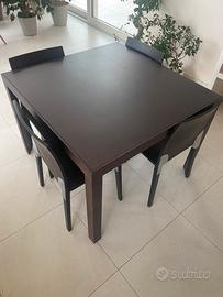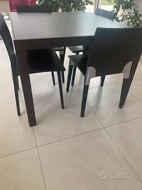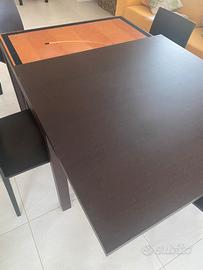 Vendo tavolo in legno color venge’ con struttura in alluminio con le sue 4 sedie.