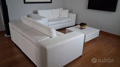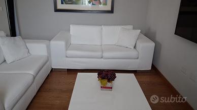 tavolino 80×80 bianco laccato lucido girevole , piu due divani bianchi sfoderabile misure 197x100 altezza 80 cn tutto ad un prezzo 700 euro