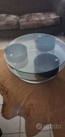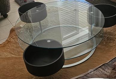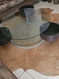 Tavolo da salotto in cristallo acciaio e legno cm 100x38h e tappeto in pelle di cavallino
