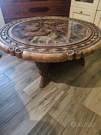 Vendo Tavolo da Salotto in legno massello tutto lavorato e intarsiato a mano. piano d'appoggio in vetro. ritiro carico acquirente.