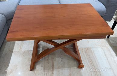 Vendo tavolo multifunzionale in legno color ciliegio, ideale sia come tavolino da salotto che come tavolo da pranzo.