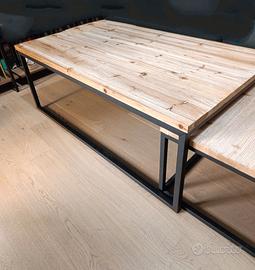 Vendesi tavolo stile industriale, materiale legno (abete) e metallo. Modello Long Island di Maison du Monde. Tavoli piccoli estraibili. Il legno superiore presenta scanalature di fabbrica.