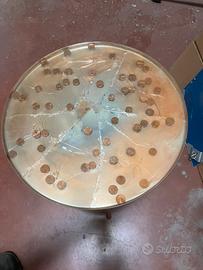 Tavolino Marca Tomasucci in rame con vetro e resina epossidica con monete annegate all’interno in ottime condizioni
