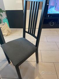 Tavolo più 6 sedie Ikea Nero in buone condizioni Qualche segno di usura nella parte superiore del tavolo , ( come nella foto) le sedie ottime condizioni sfoderabili ( volendo anche il ricambio)….il tavolo da chiuso ,misura 180cm x 90cm x 75cm altezza si può aprire con 2 prolunghe arriva a 260cm con una prolunga 220cm ci stanno comodamente da 6 /10/12 persone