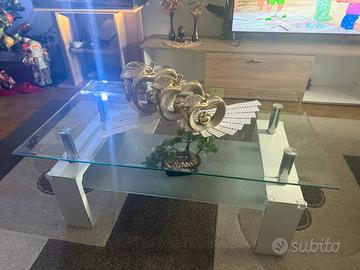 Vendo tavolo da salotto bianco e sopra vetro. Presente sulle gambe un po sgraffi volendo si può riparare.