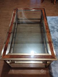 Privato vende splendido tavolo da salotto con struttura in metallo dorato,impreziosito da elementi in radica sulla superficie superiore e sulle gambe e ripiani in cristallo spesso,in ottime condizioni. Massiccio e pesante. Prezzo,non trattabile,di 100€. Ritiro a mano. Tel 391-4690318