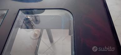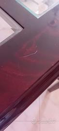 Tavolo da soggiorno datato, è in condizioni abbastanza buone ma presenta segni del tempo (è stato acquistato circa 32 anni fa) come dei graffi come quelli che si possono vedere in foto. Il tavolo è lungo 1,70 metri ed è allungabile di circa mezzo metro, largo 1 metro e alto 75cm. Il tavolo è nero con delle leggerissime sfumature color borgogna. Le piastrelle di vetro sono estraibili il che permette una pulizia efficace.