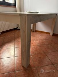 Tavolo in ottimo stato, venduto senza sedie. Dimensioni: 180x90, alt. 80. Piano lucido, con gambe in legno chiaro con venature. Non allungabile Trasporto a carico dell'acquirente. Per eventuale visione, concordare appuntamento nel periodo 28/4-10/5.