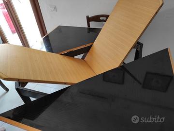 Tavolo quadrato nero lucido e in legno, in buone condizioni, vendesi 80 euro. Misure 104 cm × 104 . Estendibile 136 cm × 136. Altezza 75 cm. Tel 329 9341929 .