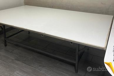 tavolo da lavoro multiuso lunghezza 310 cm per larghezza 186 cm la base del tavolo è massiccia fatta in ferro in tubolare e con un pannello centrale come si può vedere dalle foto mentre sopra c'è incalzato un tavolo di legno che il tutto è stato pagato un sacco di soldi chi ne ha a che fare lo sa quindi il prezzo non è trattabile