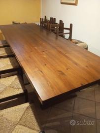 Tavolo da taverna in noce massiccio misura mt 3 x 1,50 con 2 sedie.