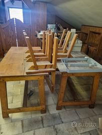 vendo 2 tavoli da taverna/mansarda in ottime condizioni in legno grezzo chiaro, usato due volte dai miei nonni anni fa, con essi anche 2 set di sedie dello stesso materiale,