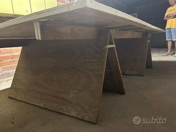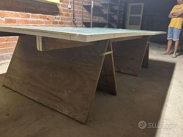 Smontabile (2 pannelli, 2 solidi cavalletti e 2 traverse), vernice da rivedere, tavolo robusto
