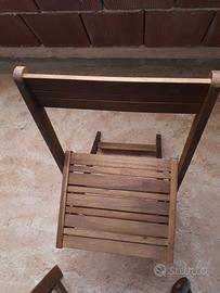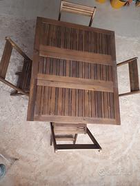tavolo da terrazzo in legno massiccio,pieghevole con quattro sedie anche esse pieghevoli.Usato due volte.Vendo per ragioni di spazio.