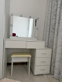 Tavolo da toeletta con specchio e sgabello imbottito, Tavolo da trucco con illuminazione regolabile, Tavolo da trucco con cassetti a LED. Preferibilmente ritiro a mano o spedizione a carico del acquirente