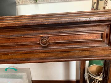Tavolo da toilette in noce intarsiato dei primi del 900 con importante specchiera centrale e due laterali Dimensione 112x58 Usure dovute dal tempo