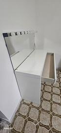 Vendo tavolo da trucco bianco con piano in vetro e specchio con luci stile camerino.