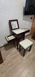 Tavolo da trucco o portagioie con sgabello a scomparsa in pelle bianca