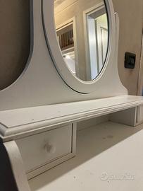 Toeletta da trucco con specchio color bianco.