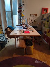 Bellissimo tavolo acquistato da De Padova. Piano di 3 cm. appoggiato su cavalletti in metallo bianco molto stabili. Lavorazione con angoli stondati. Misure 180x90. Ottimo come tavolo da studio e lavoro.