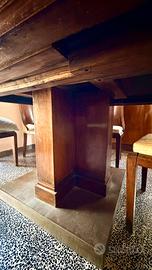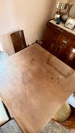 Tavolo déco anni ’30 + 6 sedie coordinate in noce