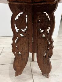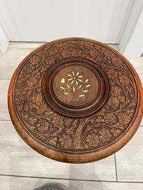 Tavolo circolare intarsiato decorativo in legno intarsiato pieghevole triangolare vintage anglo/indiano circolare