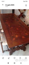 Tavolo intarsiato in noce del 700 compreso di sedie rifoderate come in origine. Allego in foto certificato e prezzo pagato in lire al momento dell acquisto.grazie
