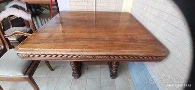 vendesi tavolo del 900 da restaurare allungabile con 2 prolunghe e piedi ri altabili, compreso di 6 sedie con paglia di vienna in ottimo stato zona roma sud