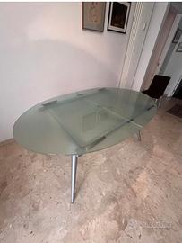 Tavolo ovale allungabile di Desalto, composto da piano in cristallo acidato da 1,2 cm e gambe in acciaio. Il tavolo si allunga fino a 260 cm. In ottime condizioni, il cristallo è perfettamente integro. Misure chiuso: 160 x 110 cm Misure aperto: 260 x 110 cm.