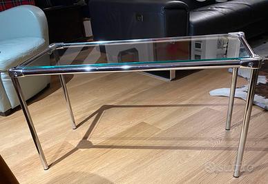 Tavolo design anni 70 acciaio inox e vetro