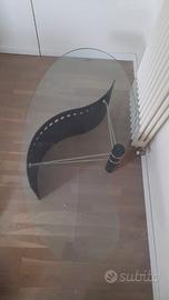 TAVOLO DI DESIGN 160XH40CM TOP IN CRISTALLO DISEGNO TAVOLOZZA E STRUTTURA IN METALLO VERNICIATO NERO CON INSERTI IN ACCIAIO. =PREZZO TRATTABILE=