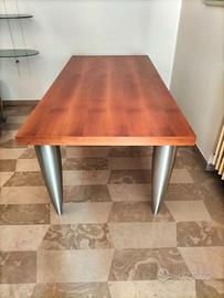 Tavolo design da soggiorno rettangolare fisso, con piano in colore ciliegio e gambe in acciaio. Alta qualità.
