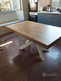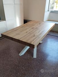 tavolo a 12 posti allungabile, gambe in acciaio verniciato piano in laminato di rovere, comprato 1 anno fa usato pochissimo