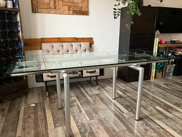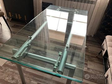 Tavolo Design Moderno in Cristallo e Metallo – Allungabile (120/150/180 cm) Vendo elegante tavolo da pranzo dal design contemporaneo e tecnico, ideale per soggiorni moderni o open space. La combinazione tra il piano in cristallo trasparente e la struttura in metallo satinato dona luminosità e leggerezza visiva all'ambiente. • Misure Versatili: Chiuso misura 75 x 120 cm (perfetto per 4-6 persone). Grazie al sistema telescopico fluido, si allunga a 150 cm o 180 cm (ospita comodamente fino a 8 persone). • Materiali di Qualità: Piano in robusto cristallo temperato e struttura portante in metallo resistente. • Meccanismo a Vista: Il sistema di allungamento è un elemento di design ed è in perfette condizioni di funzionamento, fluido e preciso. Condizioni dell'oggetto: Il tavolo è stato tenuto con estrema cura. Il cristallo è in ottime condizioni: presenta solo rarissimi e impercettibili segni da utilizzo, visibili solo in controluce e così lievi da non essere catturabili in fotografia. • Completamente Smontabile: Per facilitare al massimo il trasporto, il tavolo è interamente disassemblabile (gambe, struttura e piani in vetro si separano facilmente). • Una volta smontato, può essere trasportato in una normale autovettura con i sedili abbassati. Ritiro zona Ostia Lido Ritiro a mano a carico dell'acquirente