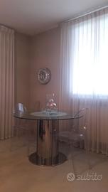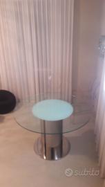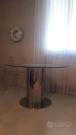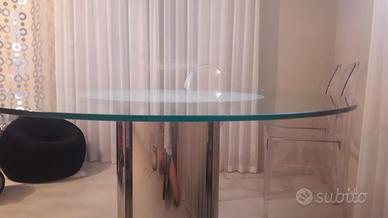 Tavolo di design pari al nuovo, in cristallo temperato con base acciaio, diametro 120cm, spessore 12mm, mai usato, tenuto solo come oggetto d'arredamento. euro 350.