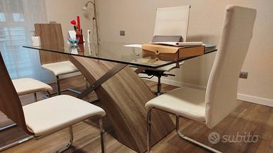Vendo elegante tavolo da pranzo in vetro temperato con struttura di design in legno e metallo, completo di 4 sedie coordinate. Solo il tavolo è stato pagato 500€ ed è in ottime condizioni. Design moderno e leggero, ideale per soggiorno, cucina o studio. ✔ Piano in vetro spesso e resistente ✔ Struttura solida e stabile ✔ Sedie comode in similpelle Misure 90 x 180 cm Prezzo 500€ trattabili