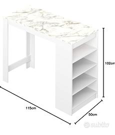Vendo tavolo moderno con piano effetto marmo bianco, ideale come scrivania, tavolo da lavoro o angolo studio. ✔ Dimensioni: 115 x 50 x h 102 cm ✔ Design compatto e salvaspazio ✔ Ripiani laterali comodi per libri, oggetti o accessori ✔ Colore bianco, facile da abbinare a qualsiasi ambiente Inclusa sedia IKEA in buone condizioni. Il tavolo è stabile e funzionale, perfetto per casa, cameretta o piccolo ufficio. Presenta dei buchini dovuti all'entrata entrata delle viti ma facilmente copribili.